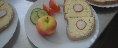 - Polévka fazolováŽemlovka s tvarohem a ovocem, caro, nápoj
