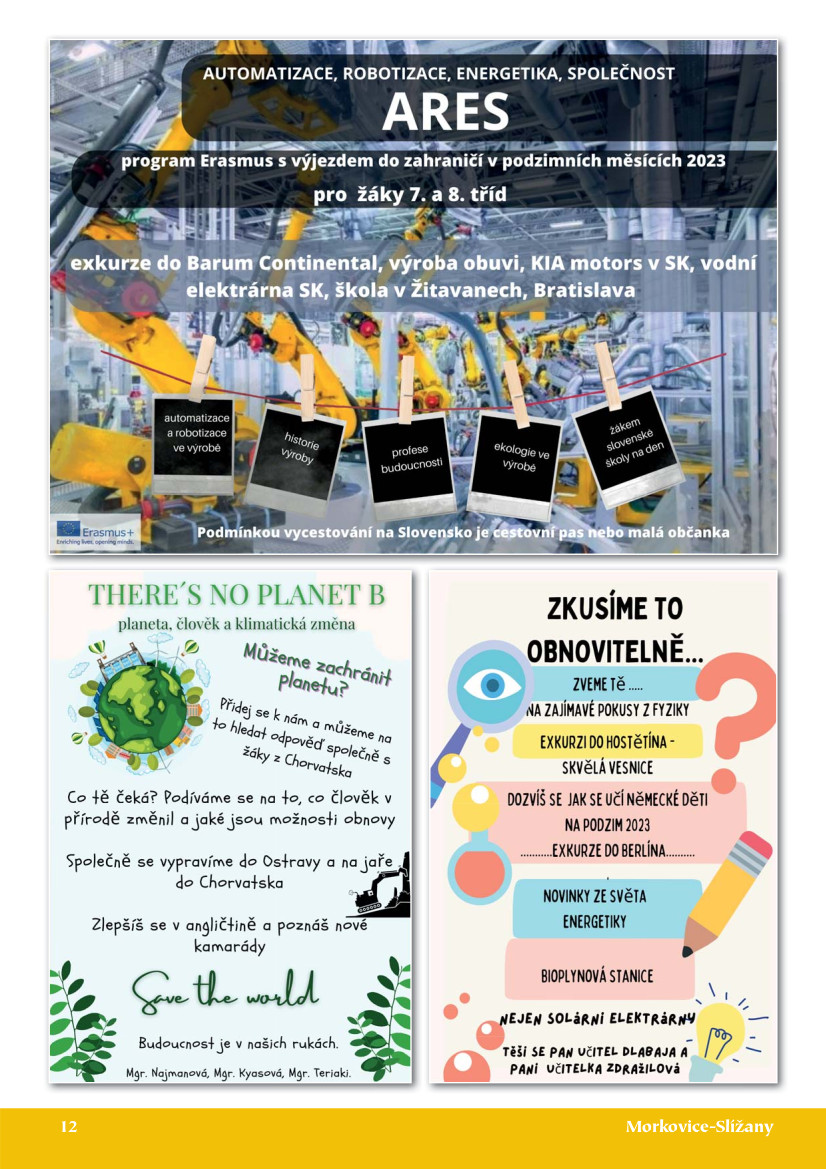 - ARES: Automatizace Robotizace Energetika a Společnost (Slovenská republika- Erasmus cíle 1, 3, 4, 5) - účastnilo se 40 žáků
