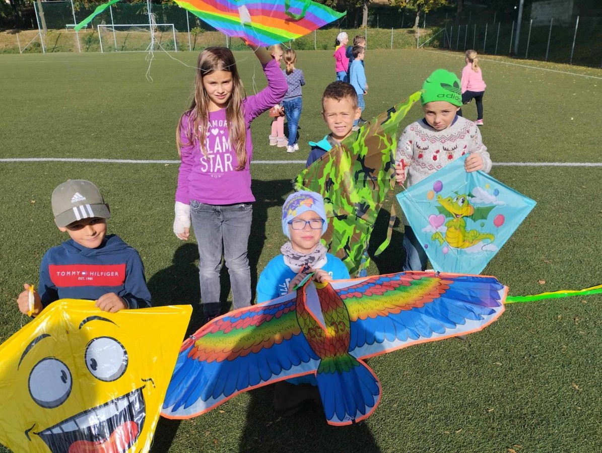 Ve středu 18. října jsme vyrazili pouštět draky. Pro velký počet dětí jsme se rozdělili na dvě skupiny. První pouštěla na hřišti s umělým trávníkem a druhá na nedalekém poli.