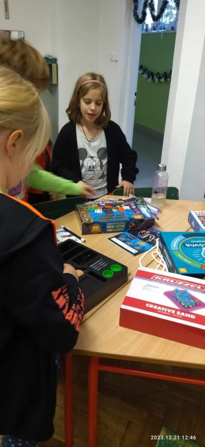 Na konci prosince chodívá i do družiny Ježíšek. V některých odděleních už naděloval, přinesl krásné dárky a vykouzlil úsměvy dětí na tvářích. Do prvního oddělení ještě nepřišel, možná čeká, až budou všechny děti hodné. Možná budou o to více překvapené po prázdninách.
