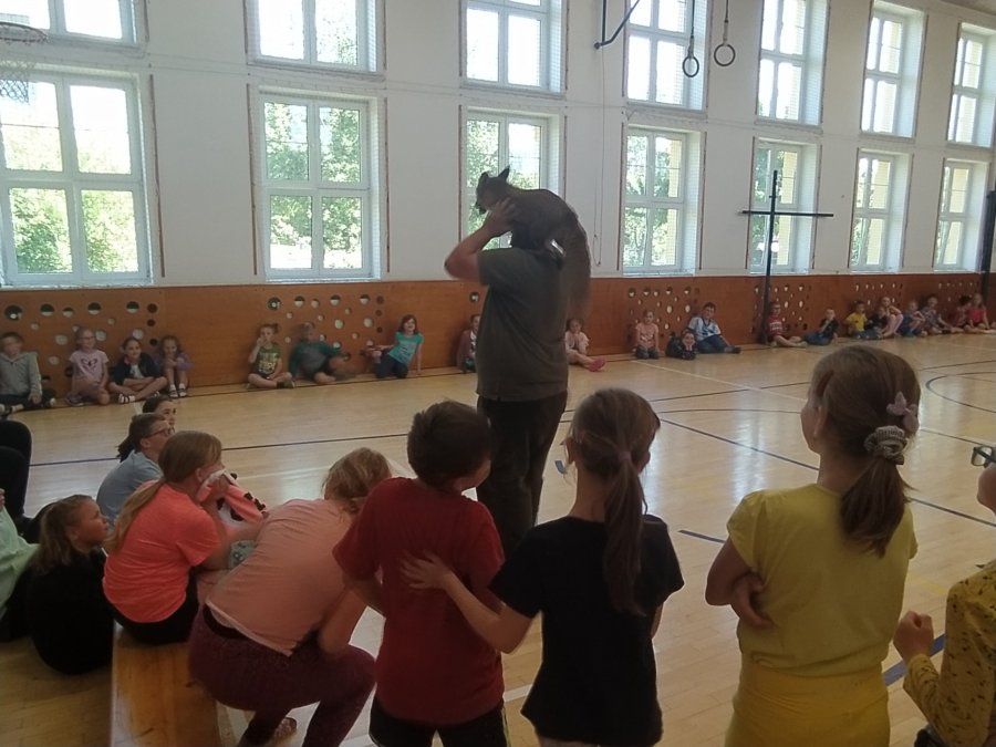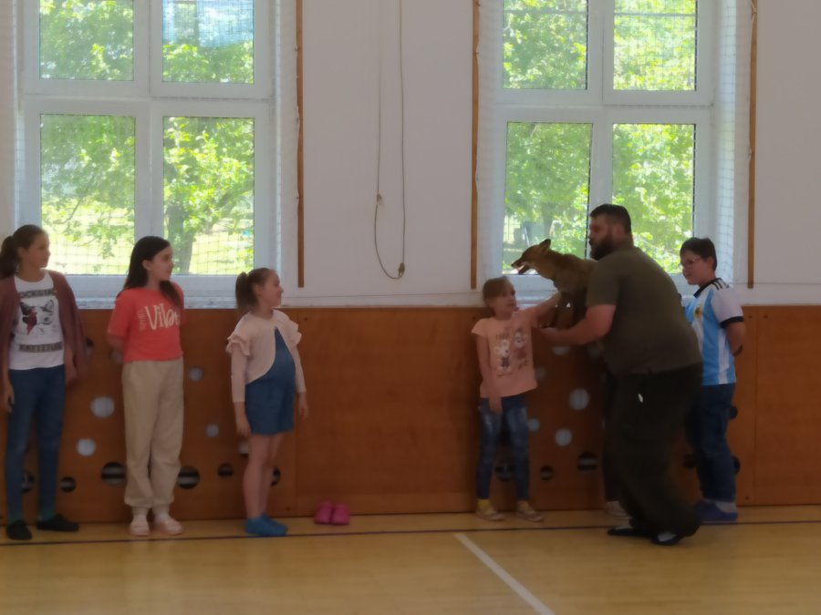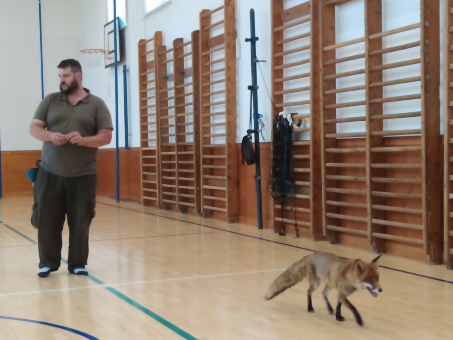 V úterý 14. května jsme se sešli v tělocvičně a netrpělivě čekali na pana myslivce, který s sebou přivezl ochočenou lišku se jménem Coco. Nejdříve nám pan myslivec pověděl o lišce spoustu informací, zatímco liška čekala ve své přepravce. Poté liška Coco vyběhla mezi děti a zvědavě pobíhala po tělocvičně. My jsme si tak mohli Coco pořádně prohlédnout a nakonec i pohladit.