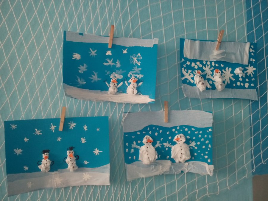 Ve školním klubu se tedy vůbec nenudíme. Malovali jsme sněhuláky a lední medvědy. Zimu jsme zakončili sněžítky. Ale blíží se nám jaro, ptáčci zpívají a zem, už se probouzí a s ní i naše nástěnka. Je plná sněženek, ptáčků, motýlků. Dokonce jsme si upletli i chobotnice.