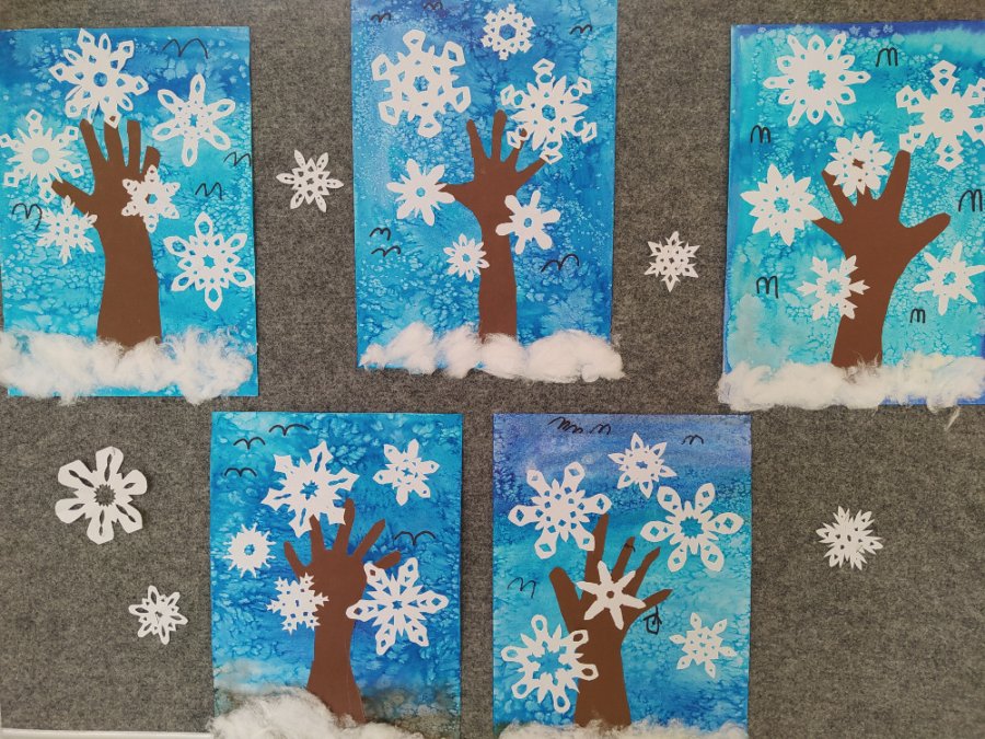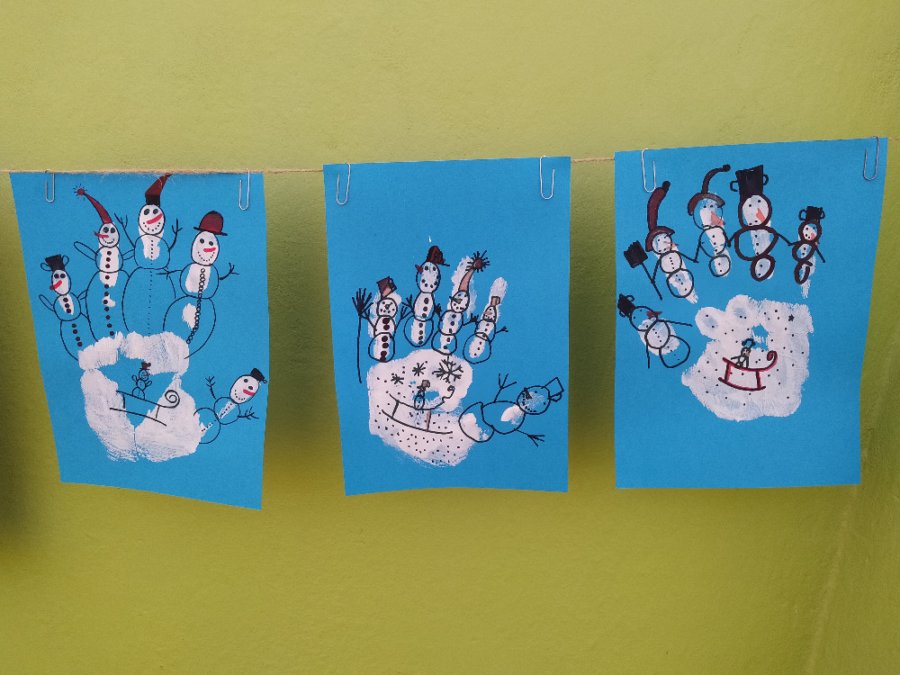 Život ve školních družinách plynul dál s omezením a tak jsme byli ochuzeni o společné soutěže. O to více času jsme věnovali výtvarným a pracovním činnostem a vyzkoušeli jsme si i netradiční výtvarné techniky. Tak vznikly obrázky například z otisku nohy, ruky nebo rozstříhaného brčka. Zajímavá byla i kresba fixy na igelitový sáček a následný otisk na vlhký papír, malování zimy pomocí soli nebo sáčku, zmizíková rezerva a zapouštění barev do klovatiny.