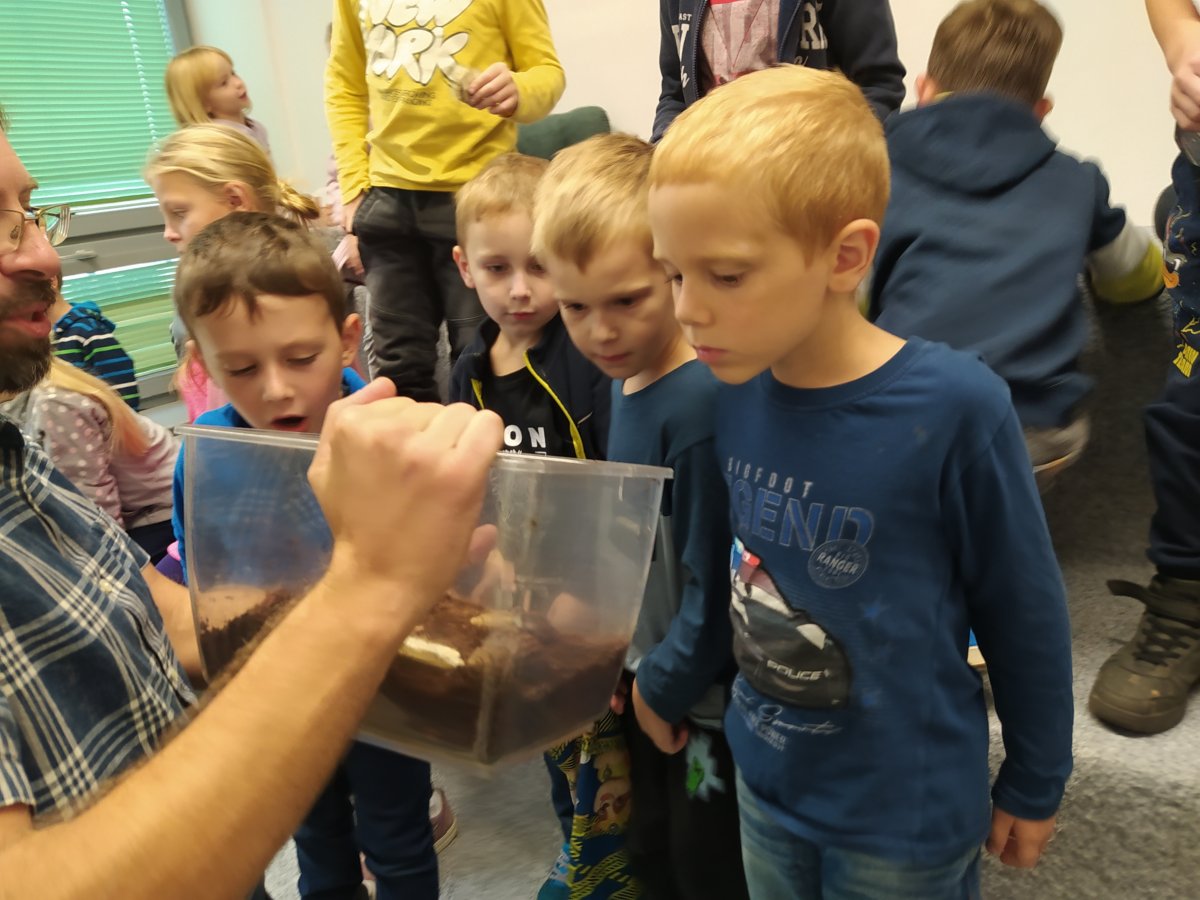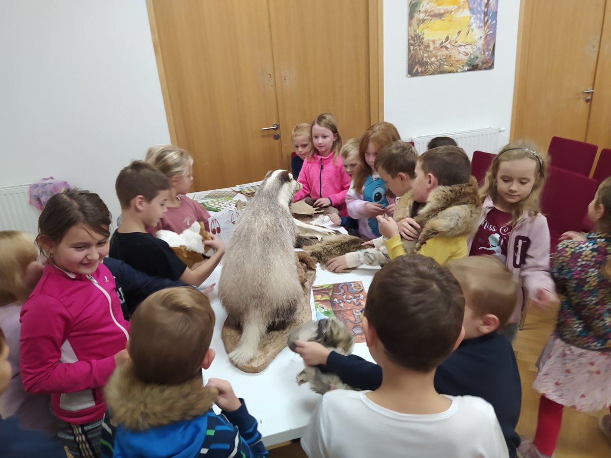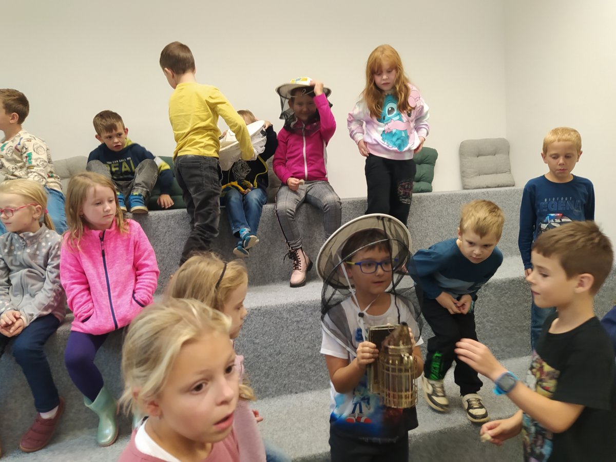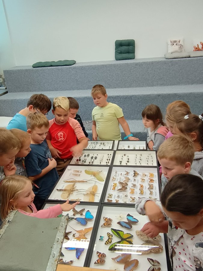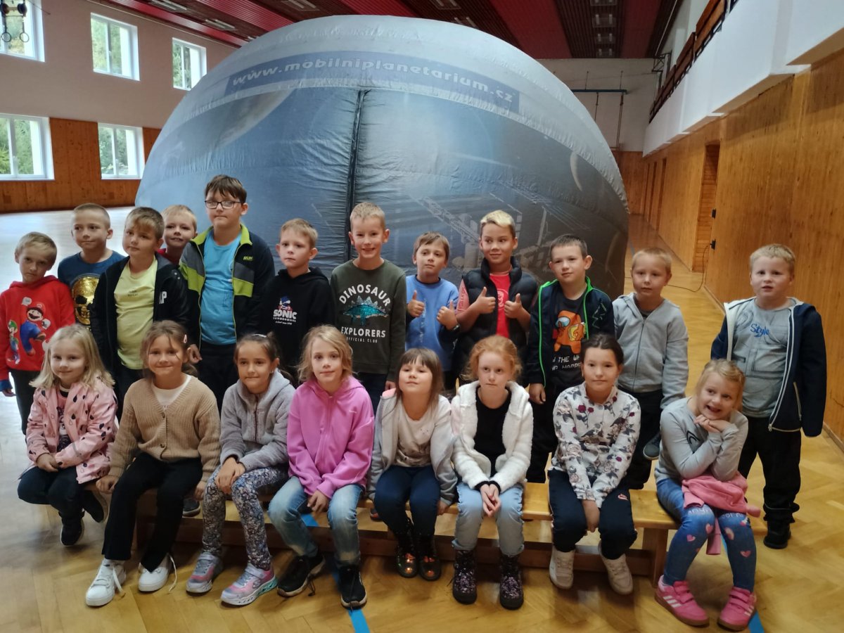 Navštívili jsme mobilní planetárium, ve kterém jsme zhlédli poučnou pohádku o důležitosti stromů, vyslechli jsme si vyprávění o lesních zvířatech s prezentací parohů a kůží. Dále nás čekalo povídání s ukázkou motýlů a brouků, včelí úl, larvy zlatohlávka a odvážní si pochovali i strašilku. Nakonec jsme si vymalovali obrázek a spokojeně plni zážitků jsme se odebrali domů.