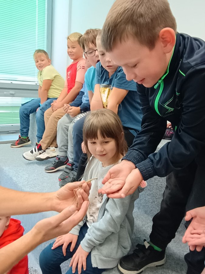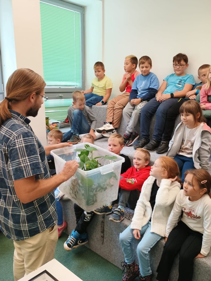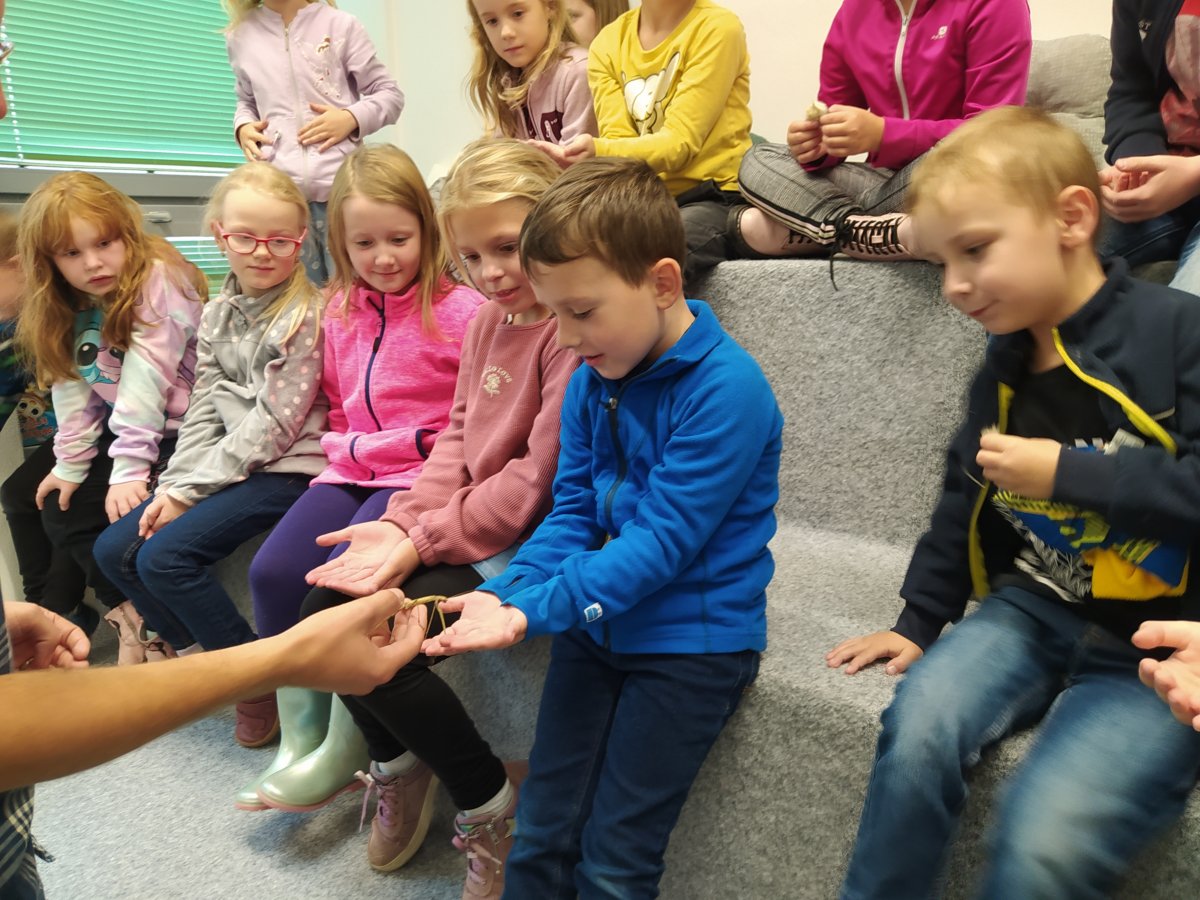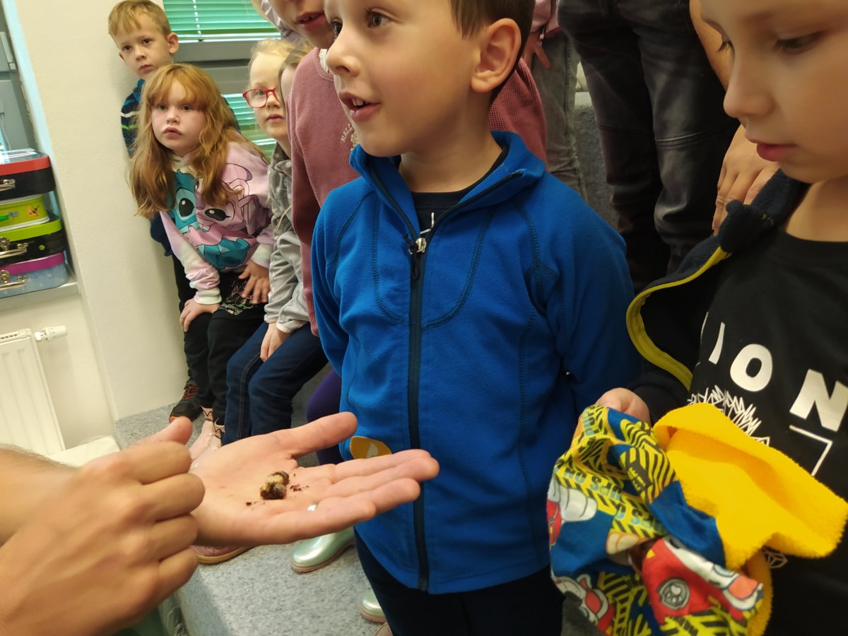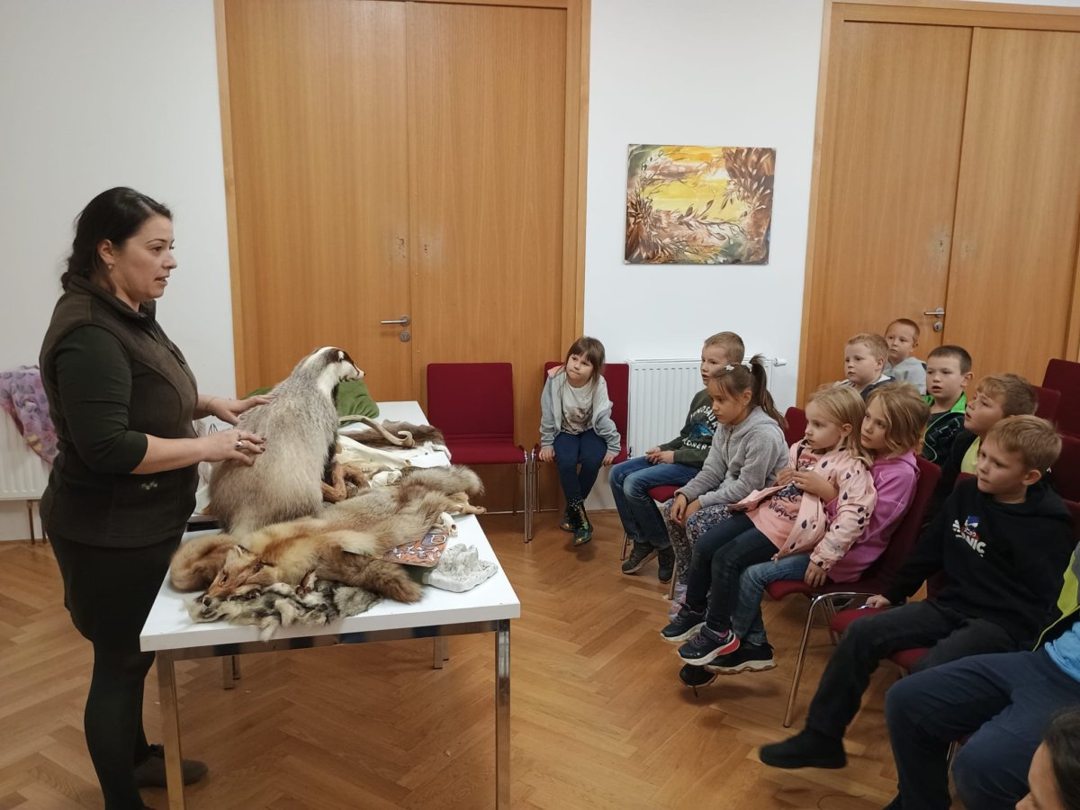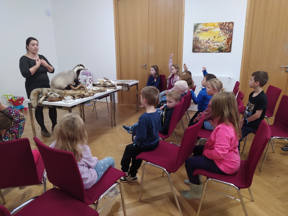 Navštívili jsme mobilní planetárium, ve kterém jsme zhlédli poučnou pohádku o důležitosti stromů, vyslechli jsme si vyprávění o lesních zvířatech s prezentací parohů a kůží. Dále nás čekalo povídání s ukázkou motýlů a brouků, včelí úl, larvy zlatohlávka a odvážní si pochovali i strašilku. Nakonec jsme si vymalovali obrázek a spokojeně plni zážitků jsme se odebrali domů.