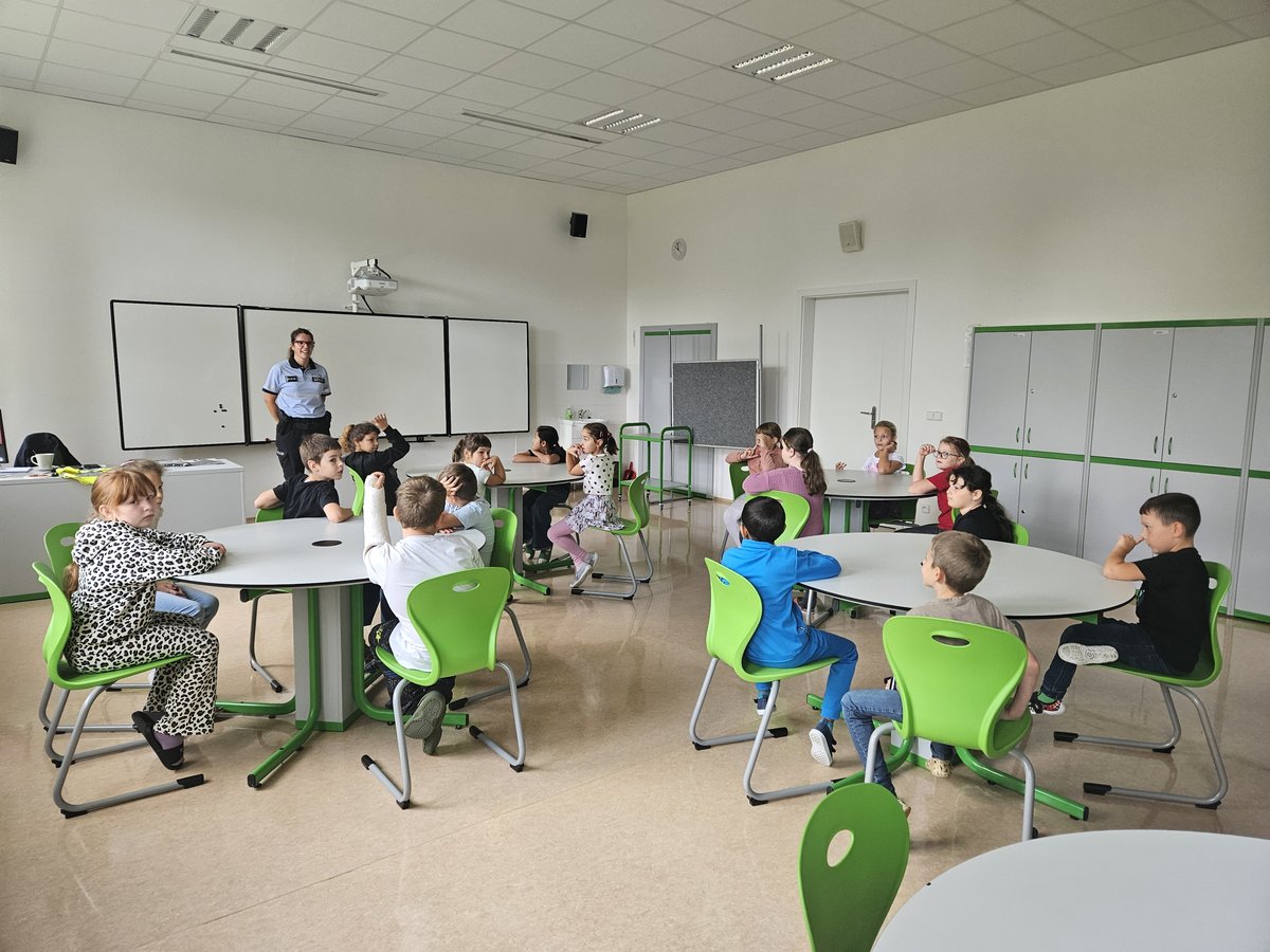 V pondělí 29. září 2025 navštívila naše druháky uniformovaná paní policistka s programem Policista je náš kamarád. Dětem představila práci pořádkového policisty, seznámila je s policejní výzbrojí a výstrojí, ukázala jim, jaká zvířata i dopravní prostředky policie využívá. Nechyběla ani doporučení, jak se chovat při setkání s cizí osobou.