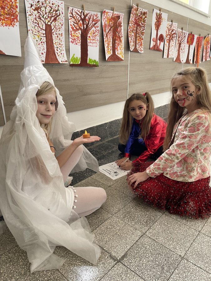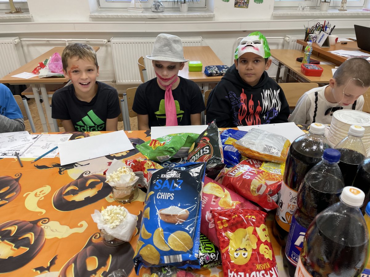 Dne 1.11.2023 se na naší škole uskutečnila akce „HALLOWEEN“. Ve třídě 4.A už od rána probíhaly vrcholné přípravy, které spočívaly v převléknutí se do strašidelných kostýmů, nachystání výzdoby a bohatého občerstvení, které rozhodně nesmělo chybět.