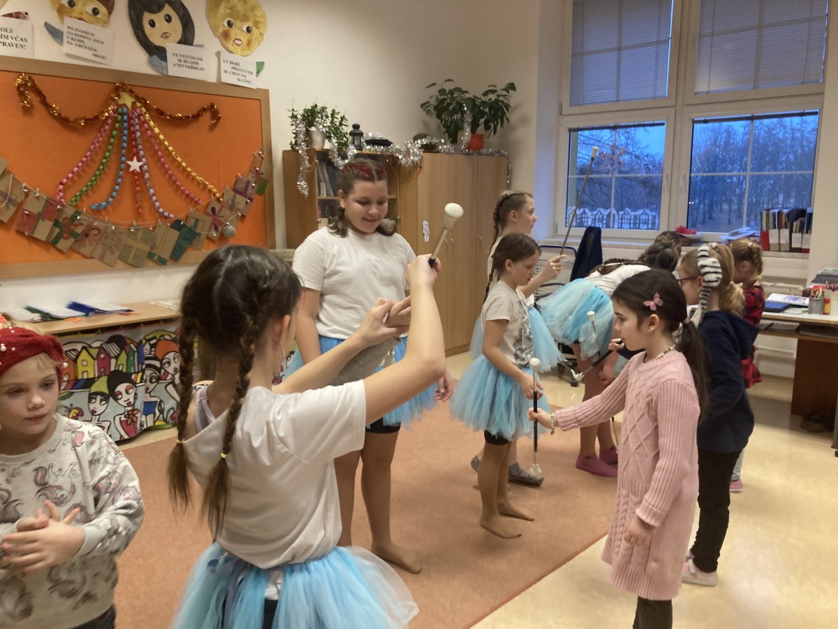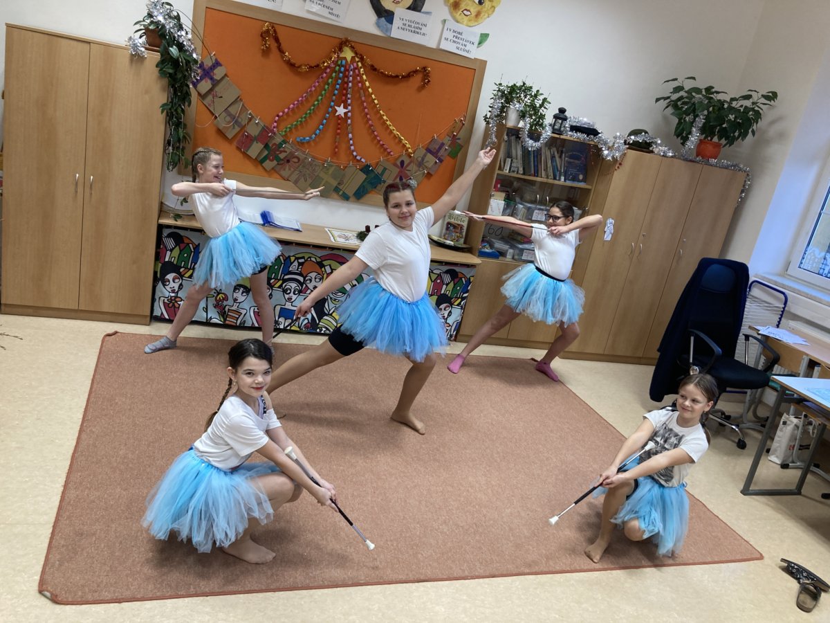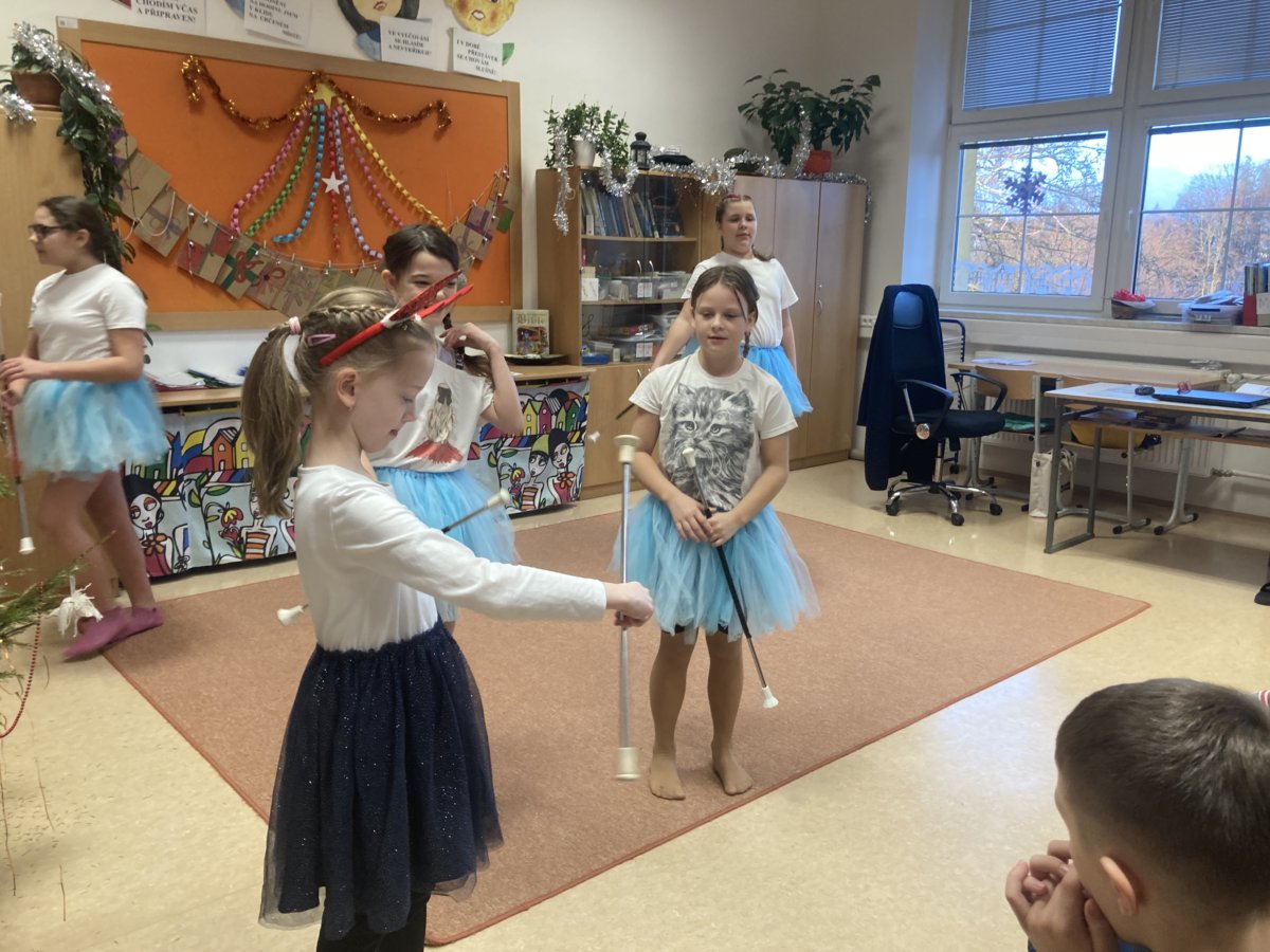 Děvčata jsou důkazem toho, že vedeme žáky naší školy k samostatnosti, aktivitě a tvořivosti. Vystoupení si připravila naprosto sama včetně výběru hudby, nácviku pohybů a triků s hůlkou. Velmi pěkná byla i choreografie, na které se společně podílely všechny dívky. Na vánoční besídku postupně pozvaly všechny třídy 1. stupně a zájemci měli možnost si manipulaci s hůlkami sami vyzkoušet. Že hůlka sem tam trémou spadla, nikomu nevadilo a diváci děvčata oceňovali potleskem.