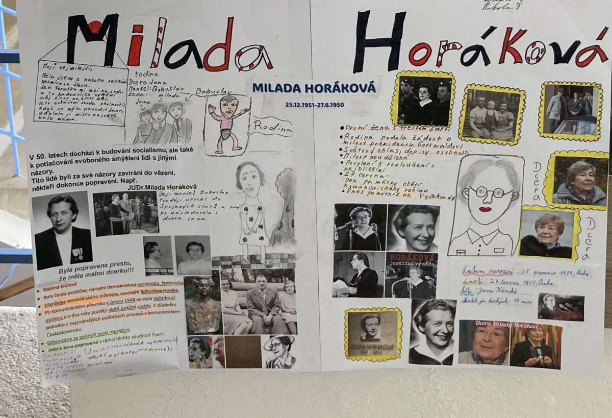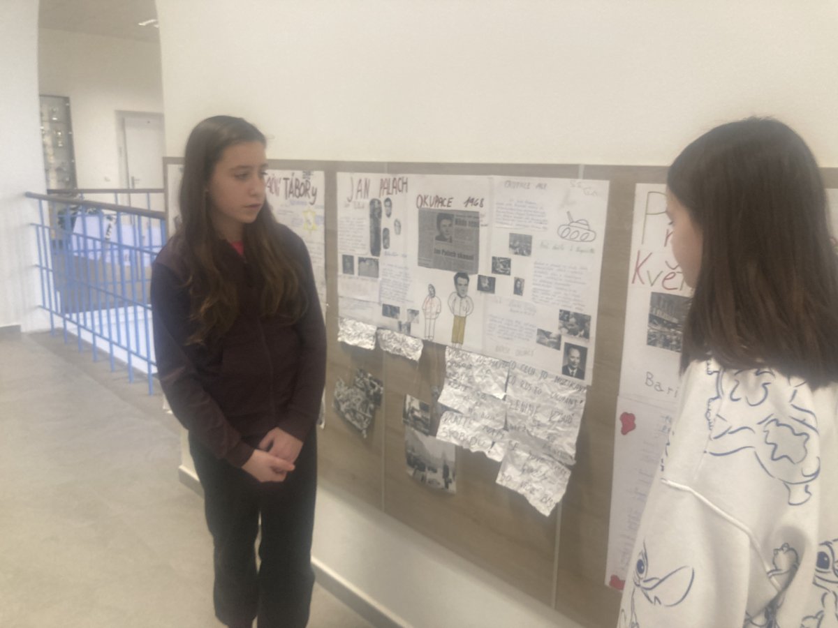 Skončilo 1. pololetí a s ním i naše vlativědné učivo o moderních dějinách naší země. Zakončili jsme ho projektem. Ve skupinách jsme si vybrali to, co nás zajímalo – např. Koncentrační tábory, Vypálení Lidic a Ležáků, Partyzánská skupina Olga, Osud Milady Horákové, Pražské jaro 1968 a upálení Jana Palacha... Pak jsme si vyhledali k danému tématu informace, obrázky a zpracovali vše do plakátů. Nejvíc jsme se těšili, ale také obávali prezentace, která se nám nakonec všem povedla. V rámci slohu nás taky bavilo psát dopis významné osobnosti našich dějin. Už jsme prostě páťáci a né hlupáci:)