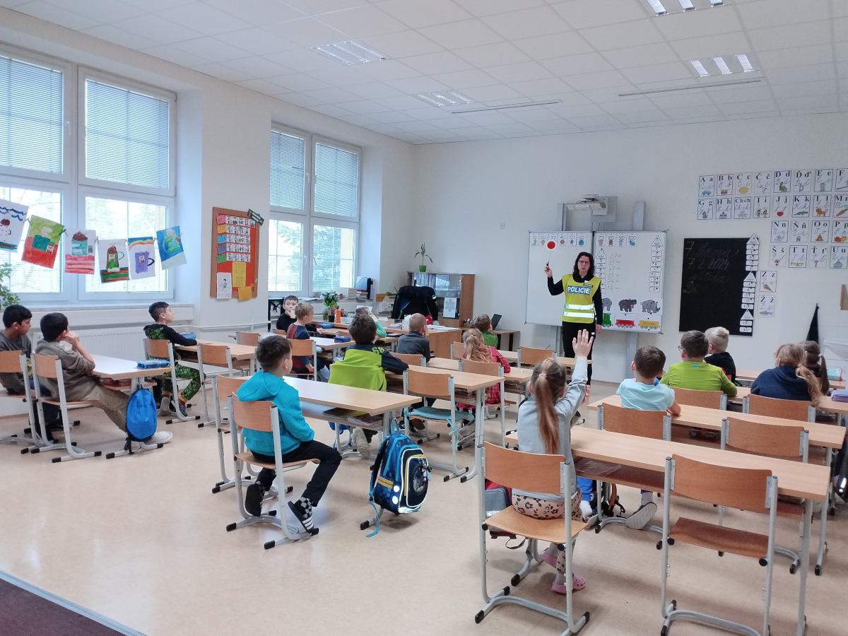 Minulý týden jsme měli v 2.A a 2.B vzácnou návštěvu, byla jí nprap. Ing. Barbora Balášová, která za námi přišla v rámci PP – Policie ČR – Policista je náš kamarád. Paní policistka si s dětmi povídala o tom, co mají dělat v různých situacích, o bezpečnosti při cestě do školy, ukázala jim základní vybavení policisty: pouta, obušek. A na závěr si každý udělal svůj vlastní otisk prstu. Paní policistce děkujeme za velmi milou návštěvu.
