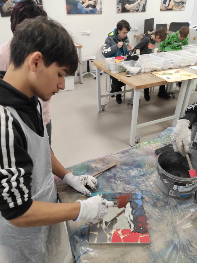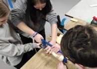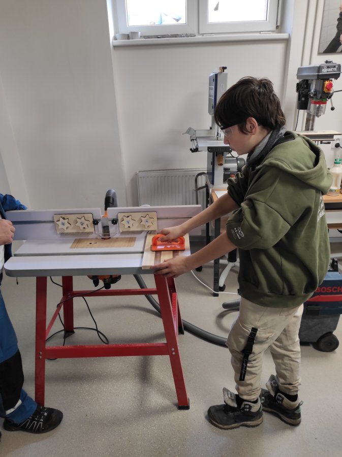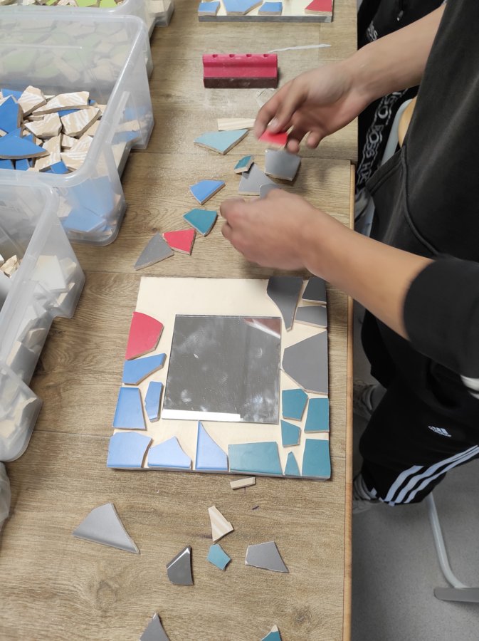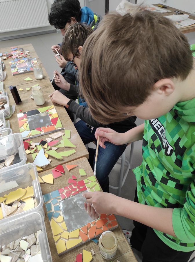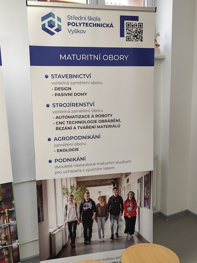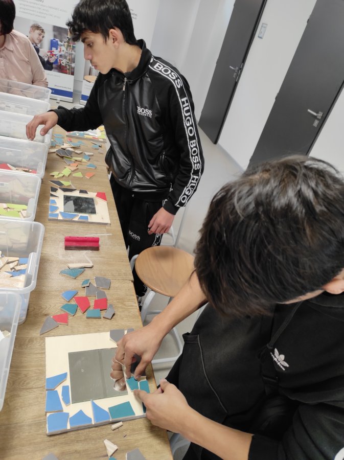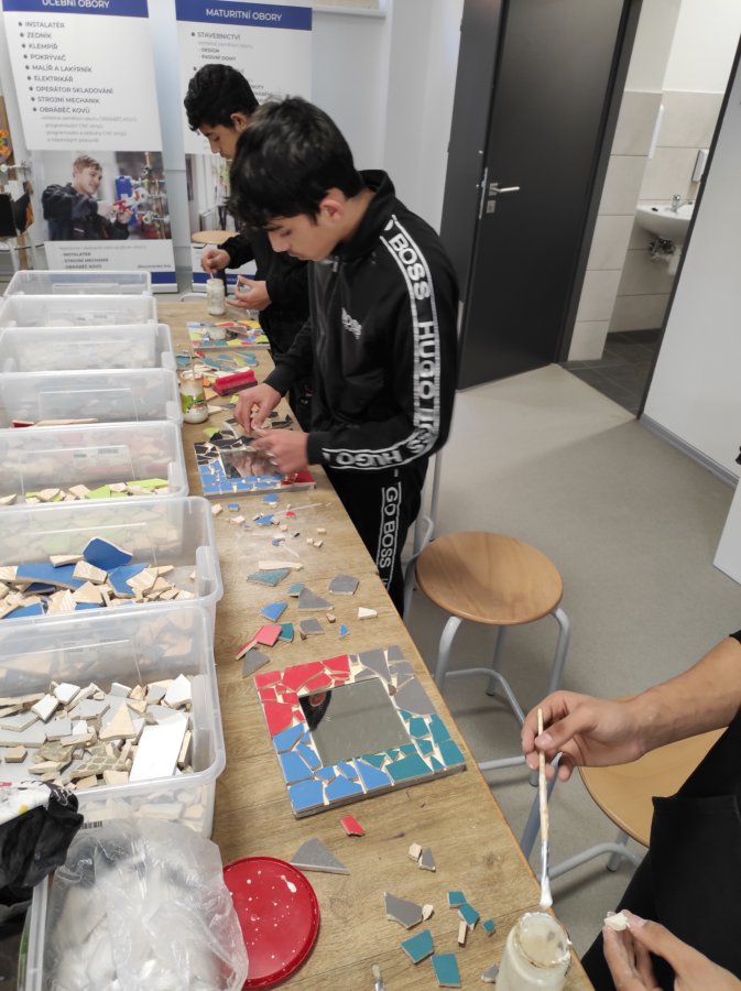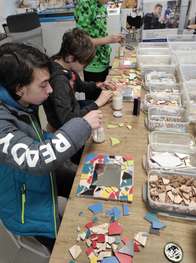 Zde nás čekala návštěva Střední polytechnické školy. Po příjemném přivítání se nás ujali dva úžasní lidé. Pod vedením Mgr. Lenky Kosourové si jedna skupina studentů vyrobila zrcadlo technikou mozaiky a druhá polovina žáků pod vedením Michala Pouče odvedla úžasnou práci, jejímž výsledkem bylo kuchyňské prkénko. Na závěr se nás ujala paní PhDr. Hana Křivdová, Ph.D., která nás provedla úsekem odborného výcviku, kde mohli žáci nahlédnout do učeben daného oboru.