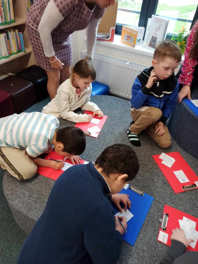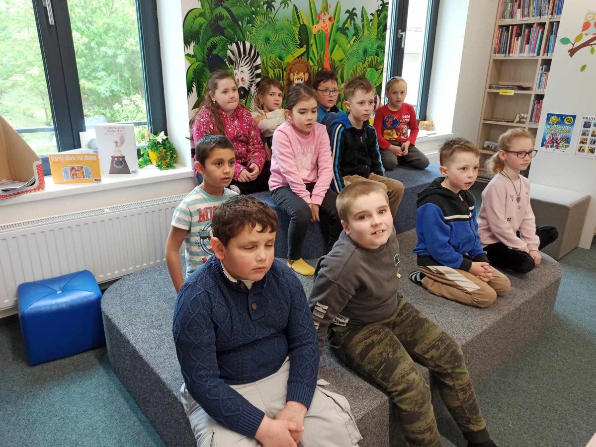 V úterý 23. 4. 2024 byli žáci 1. tříd pozváni do knihovny, aby se dověděli, jak to v ní chodí. Paní knihovnice jim ukázaly, jak jsou knihy barevně označené podle žánrů a v které části knihovny se nacházejí. Děti potom splnily několik úkolů, na kterých dokázaly, že již umí téměř vše přečíst - hledaly slova k obrázkům zvířátek, skládaly z písmen jména pohádkových postav, vybíraly písmena k obrázkům různých předmětů a řadily k sobě protiklady.