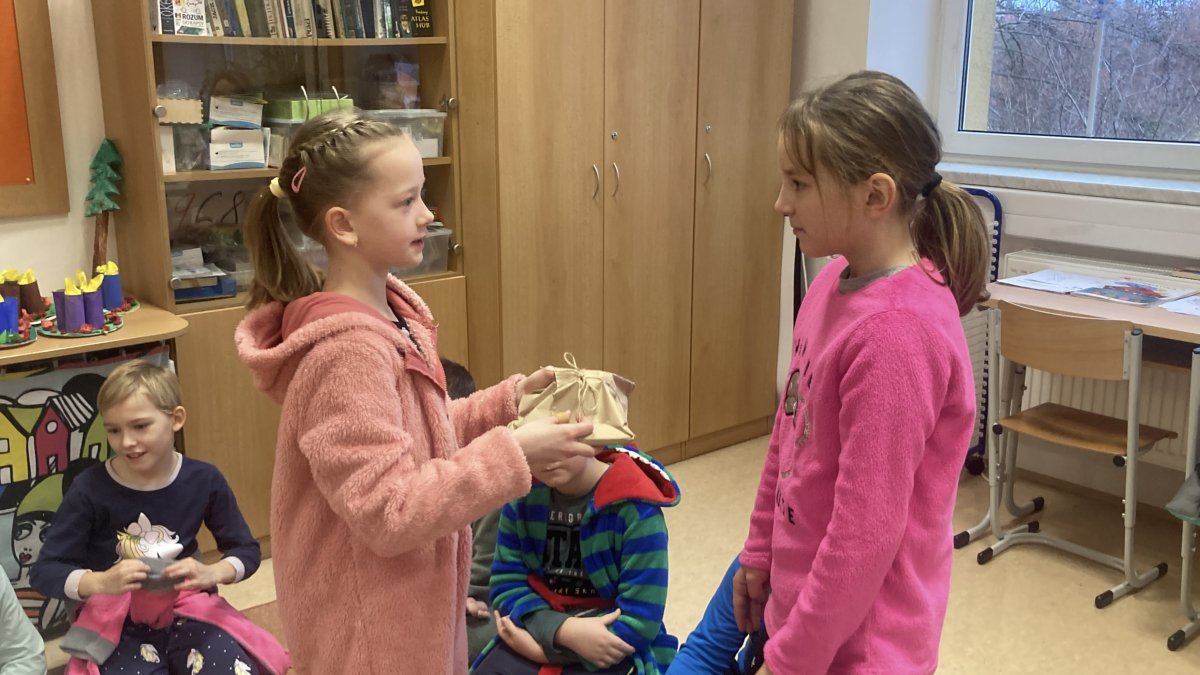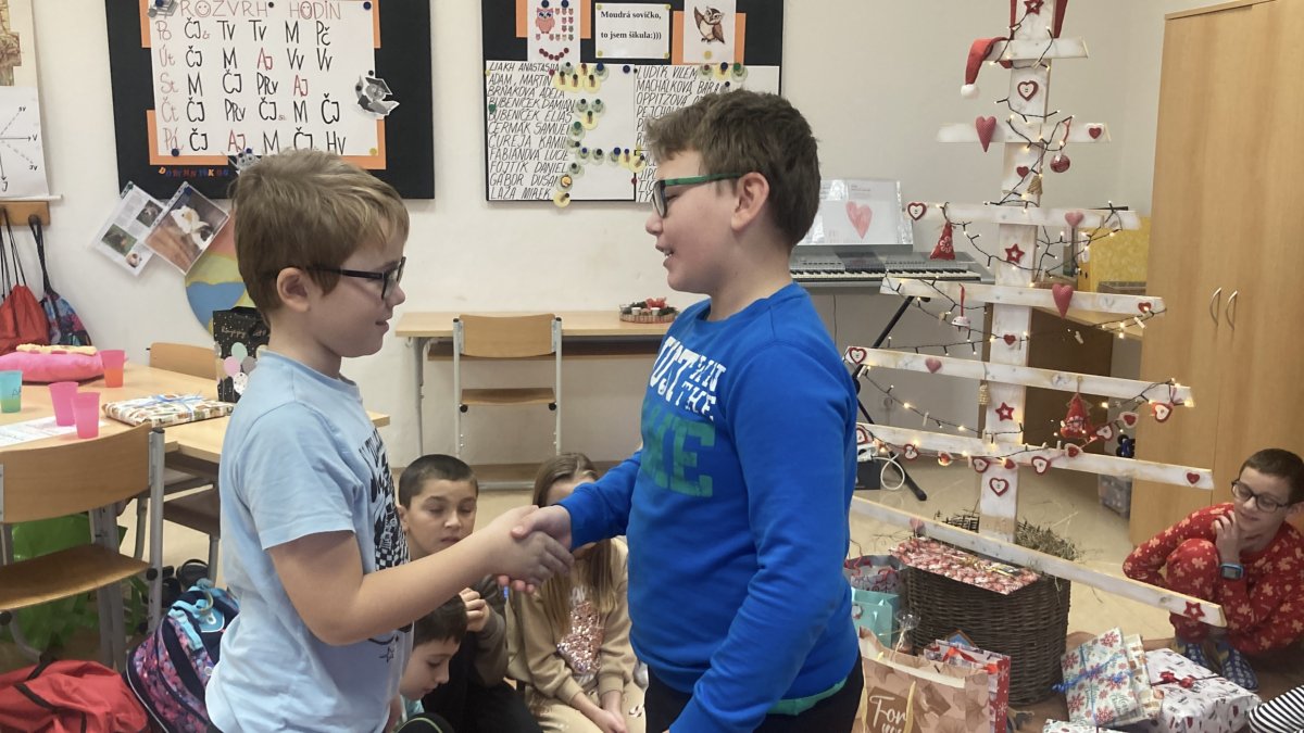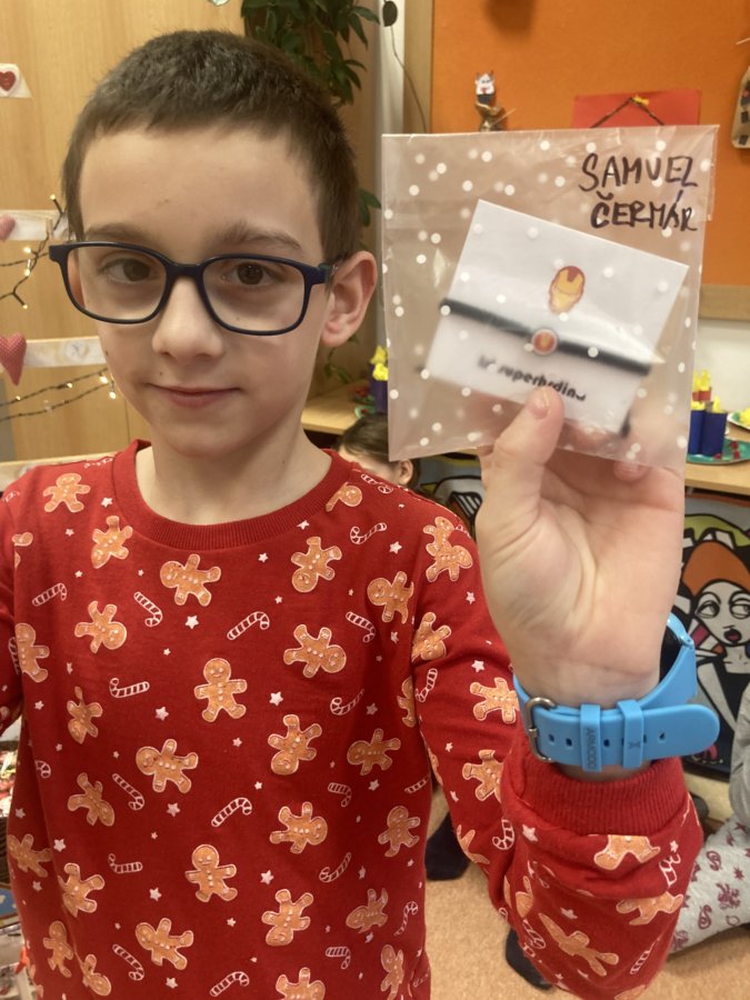 Co to je? Nejsou to hmotné dárky, ale dárky v podobě ukázky toho, kdo a jaký jsem. Žáci si vylosovali na každý den v adventním kalendáři jedno nebo dvě jména spolužáků, kteří na druhý den ve třídě předvedli, co umí, co je baví, s čím si rádi hrají… Cílem bylo dozvědět se o svých spolužácích něco nového, co jsme o nich třeba ještě nevěděli, ale také zvyšovat sebedůvěru a zdravé sebevědomí jednotlivých žáků. Posilovali jsme tím a zlepšovali vztahy ve třídě, protože jsme si za ukázky tleskali a děkovali. Všichni byli moc šikovní a dočkali jsme se nejednoho překvapení. Máme mezi sebou například muzikanty - dva houslisty, bubeníka, klarinetistu, ale i chovatele morčátek, fotbalistu, skokana přes švihadlo, hasiče, programátora, cvičitelku hobby horsingu, malíře a sochaře, děti milující své hračky, stavebnice, knihy…