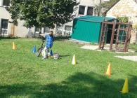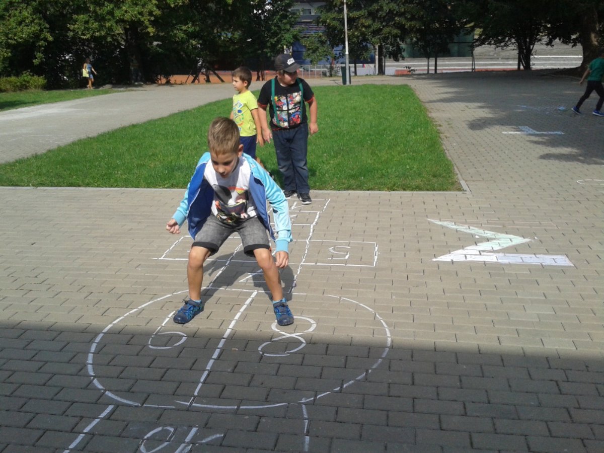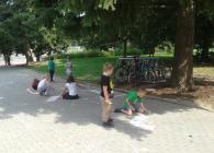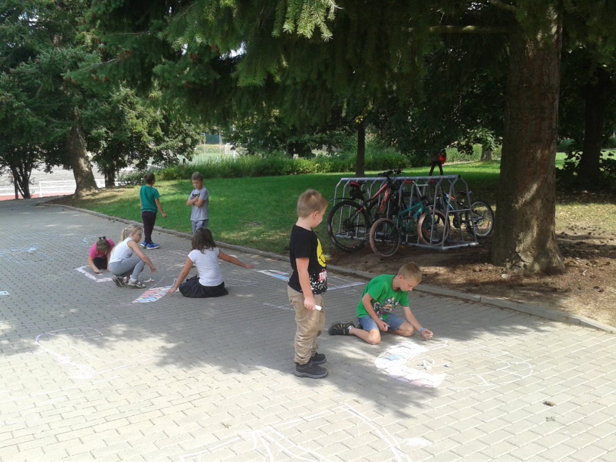 Začátek školního roku děti ve školních družinách trávily hlavně na čerstvém vzduchu. Před školou jsme malovali křídami písmena a na zahrádce jsme uspořádali celodružinovou soutěž: JÍZDA ZRUČNOSTI NA KOLOBĚŽCE.