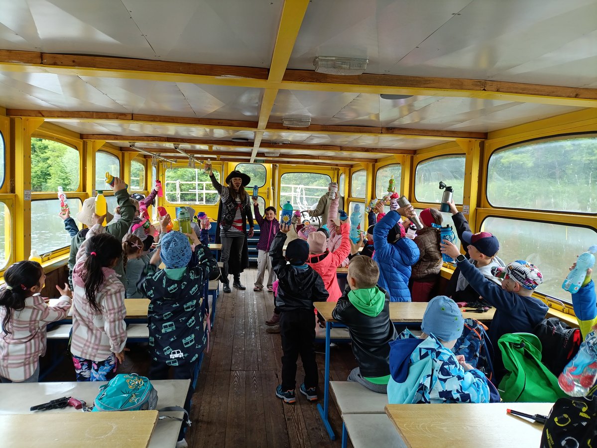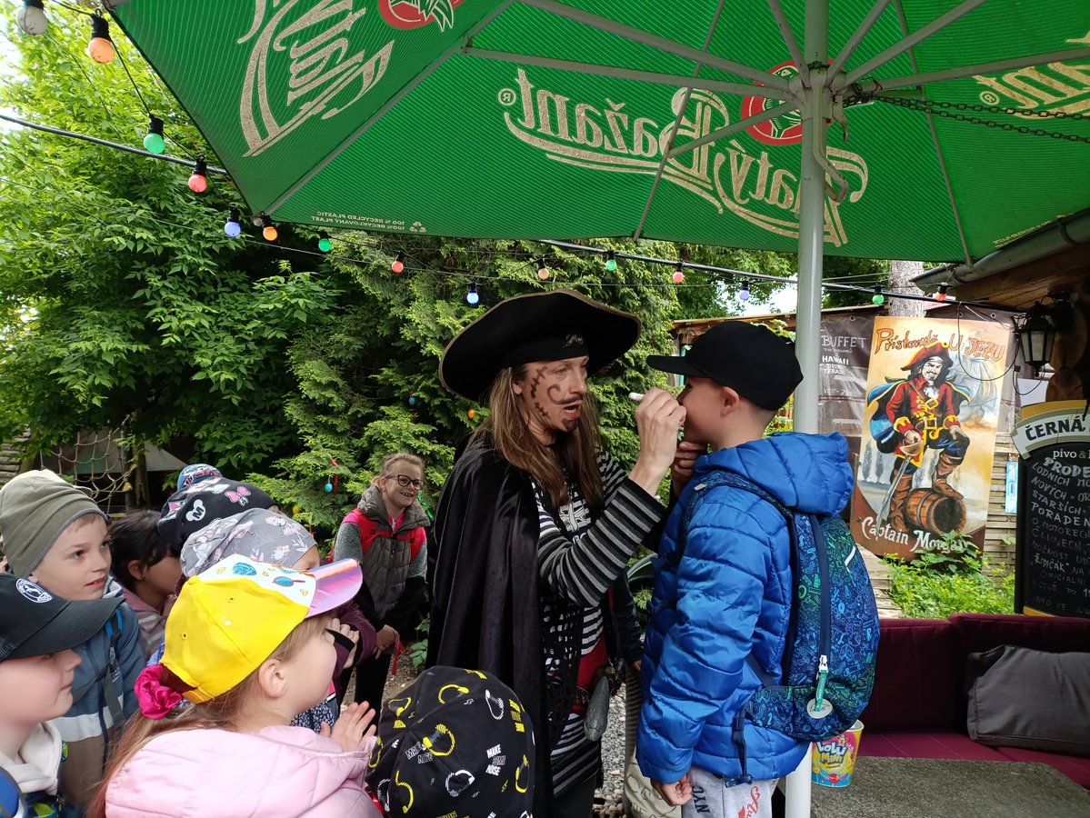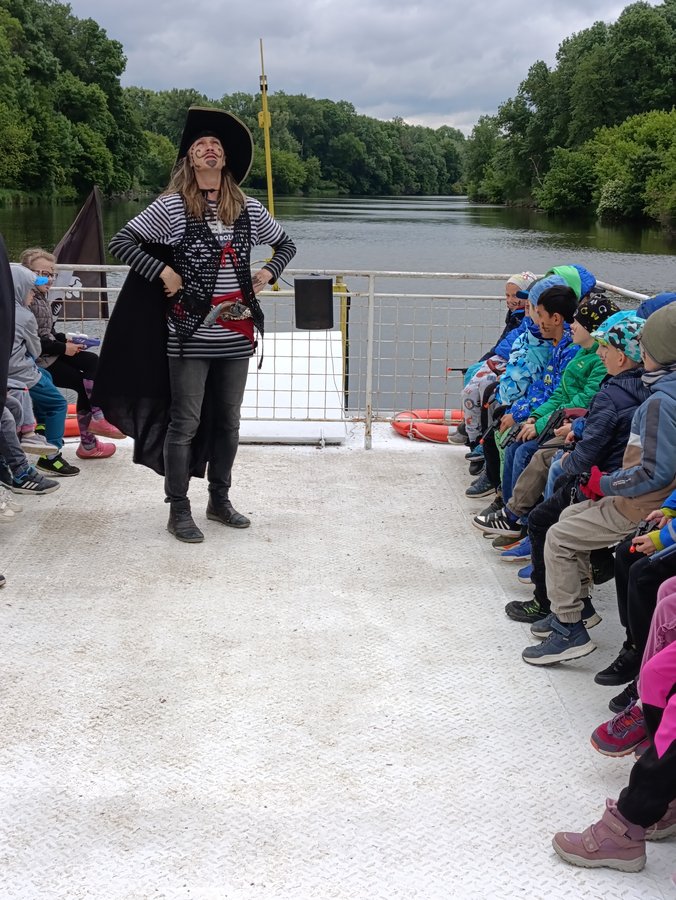 V pondělí 19. 5. 2025 jsme se my, žáci prvních tříd, vydali na náš školní výlet. Naše cesta směřovala do Přístaviště „U Jezu“ Hodonín, kde nás čekala Pirátská plavba po řece Moravě. Plavba započala patřičným ustrojením a vyzbrojením posádky, která pak pod vedením největšího pirátského kapitána Černovouse vyplula na lodi Konstancie na svou plavbu. Důležitá byla také mapa, podle které jsme museli najít poklad, který byl ukrytý na ostrově. Když jsme poklad našli – spravedlivě jsme si ho rozdělili a ještě k němu získali potvrzení „Pirát – kormidelník“.