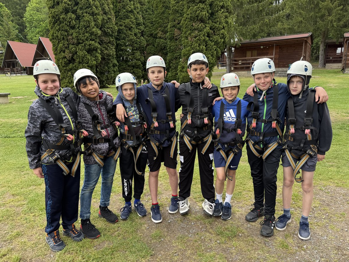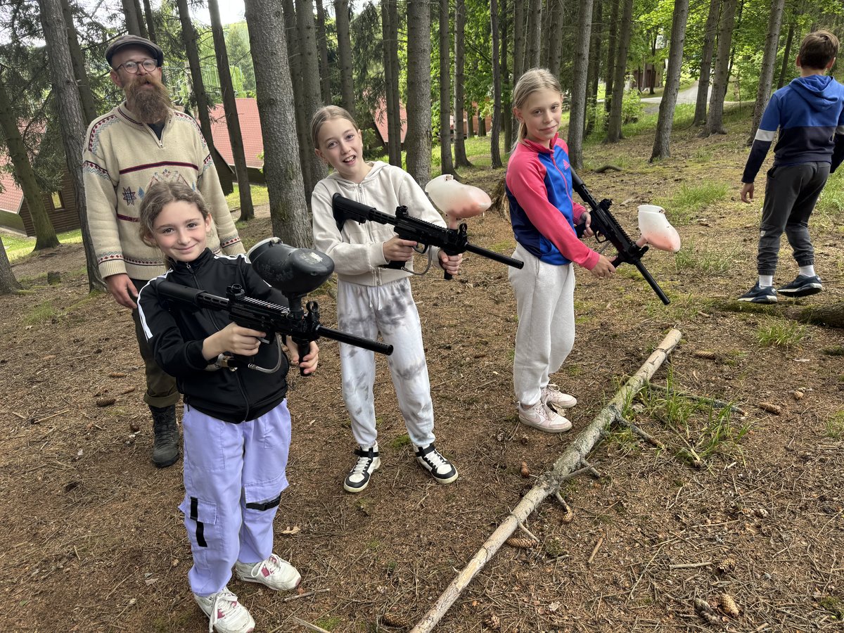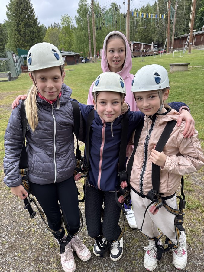 Program jsme měli pořádně nabitý! Vyzkoušeli jsme si lanové centrum, střelbu z luku, foukačku, horolezeckou věž, lanovku, paintball a také lidské ruské kuželky. Nechyběly ani týmové hry a zábavné večerní aktivity. Ve volném čase jsme hráli badminton, kriket a fotbal. Někteří z nás museli překonat strach z výšek, ale zvládli jsme to skvěle!