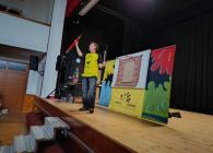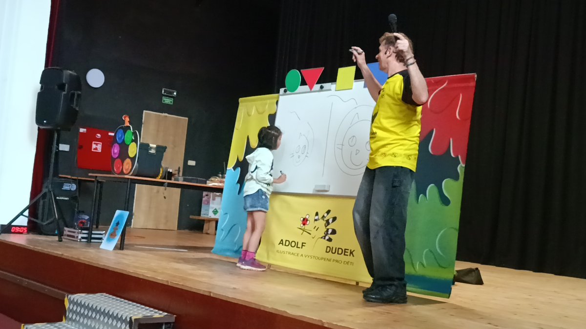 Byla to vlastně zábavná, interaktivní show, která nás všechny moc bavila. Vtipnou formou jsme se seznámili se skutečným ilustrátorem a jeho prací, vyzkoušeli si jak snadno můžou nakreslit cokoli prostřednictvím základních geometrických tvarů. Součástí vystoupení byly i soutěže a hlavně humor a veselí.