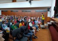 V úterý 3. 6. se všichni školáci 1. stupně naší školy vydali do sokolovny, kde je očekával ilustrátor dětských knih Adolf Dudek se svým programem „Malování pro děti“.