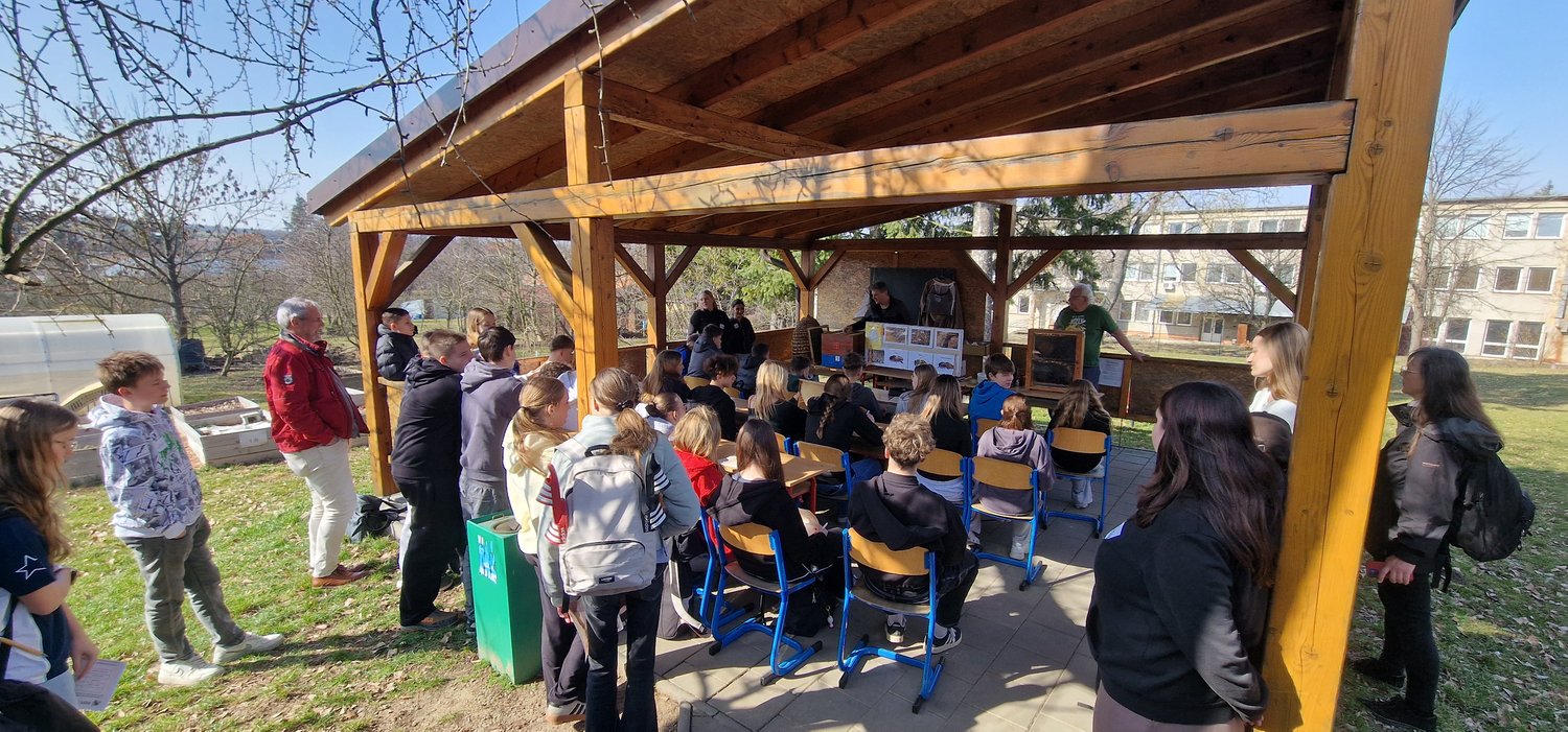 Součástí programu byla také ukázka vermikompostéru, který slouží ke zpracování kuchyňského bioodpadu pomocí žížal a k výrobě přírodního hnojiva. Žáci tak poznali jednoduchý a ekologický způsob, jak lze zpracovávat odpad a zároveň získat kvalitní hnojivo pro zahradu. Tato aktivita byla propojena s výsadbou ovocných stromů ve školní zahradě. Stromy nebyly vysazeny jen jako příspěvek k čistšímu ovzduší, ale také jako symbol partnerství, které vzniklo mezi naší školou a školou v Německu.