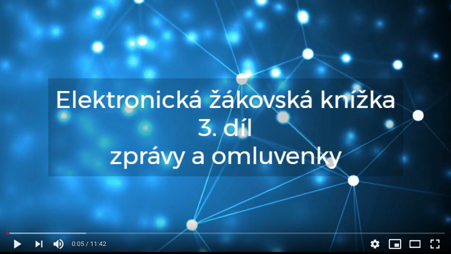 1. díl - Registrace 2. díl - Známky 3. díl - Zprávy a omluvenky Elektronická žákovská knížka, 1. díl -- Registrace (PDF) Elektronická žákovská knížka, 1. díl -- Registrace (VIDEO) Elektronická žákovská knížka, 2. díl -- Známky (VIDEO) Elektronická žákovská knížka, 3. díl -- Zprávy a omluvenky (VIDEO) 30.08.2022